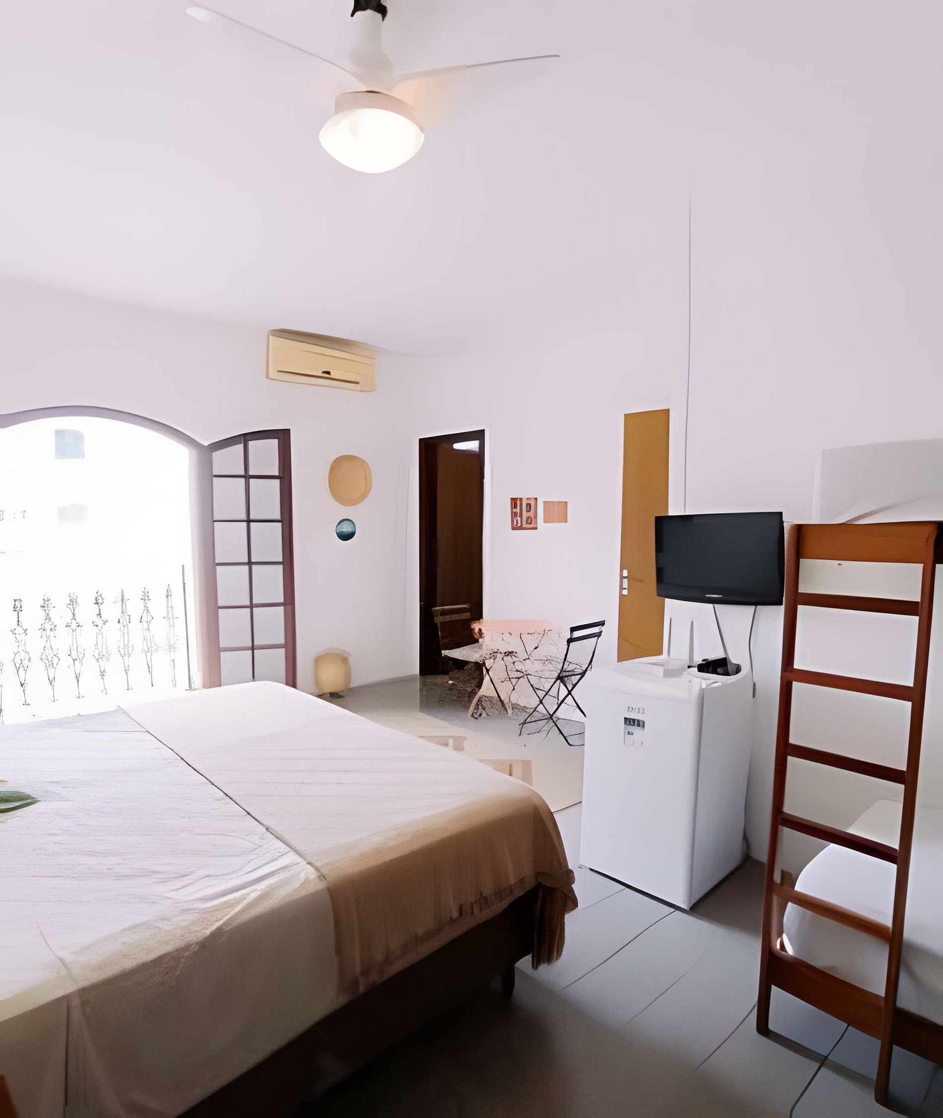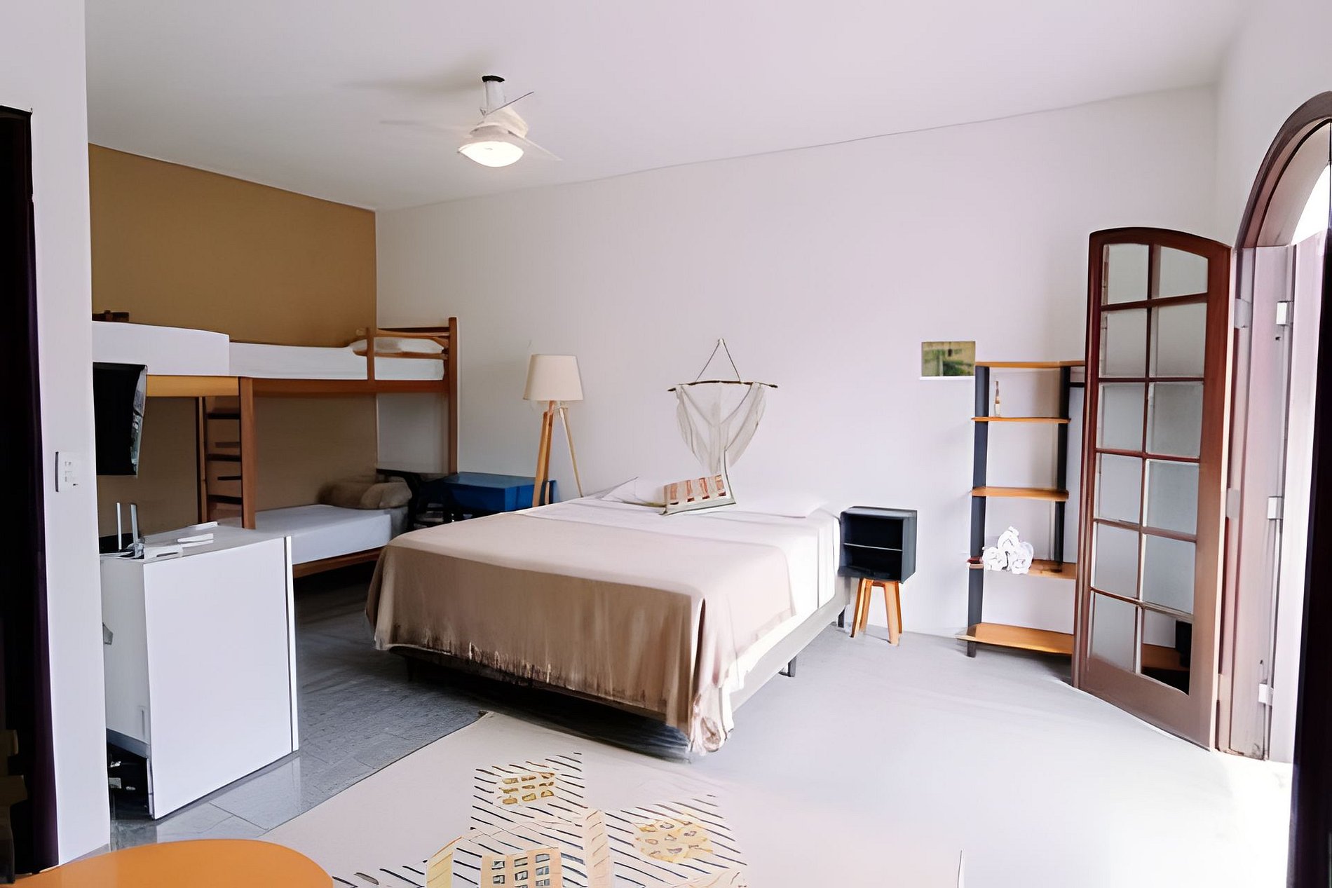Suíte privativa, na localização mais privilegiada de Ubatuba. A suíte acomoda até 6 pessoas. Possui uma cama de casal king e duas beliches, ar condicinado split, tv, ventilador de teto, Wi-FI, banheiro privativo e varanda. Café da manhã incluso para reservas via airbnb. Nossas acomodações são aconchegantes e já incluem a roupa de cama e banho. Na área comum temos uma cozinha para utilização de todos os hóspedes. Oferecemos total liberdade e privacidade aos hóspedes, com sistema de self check in!