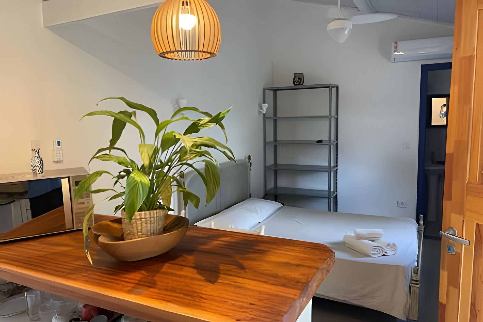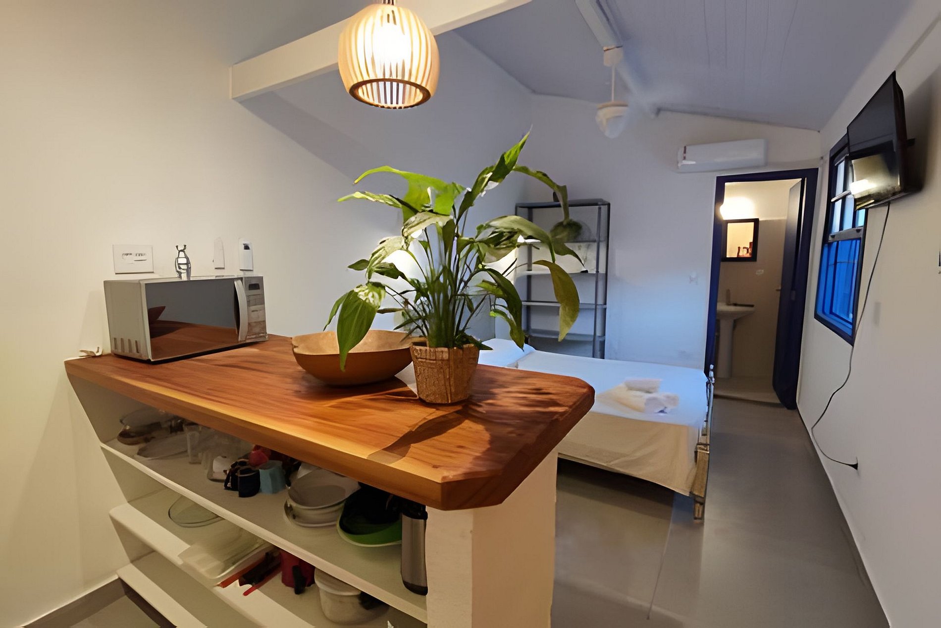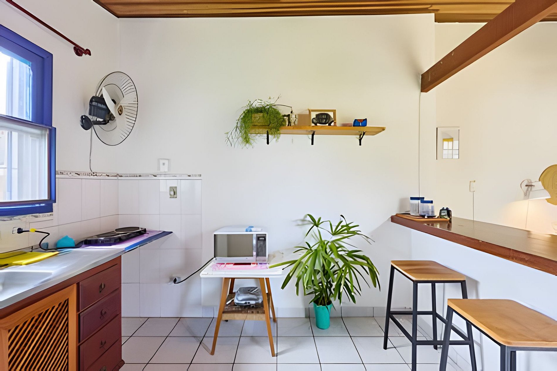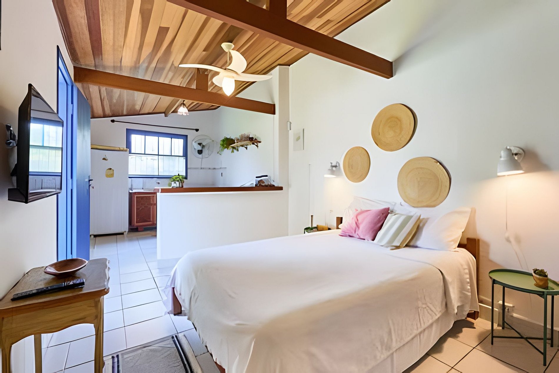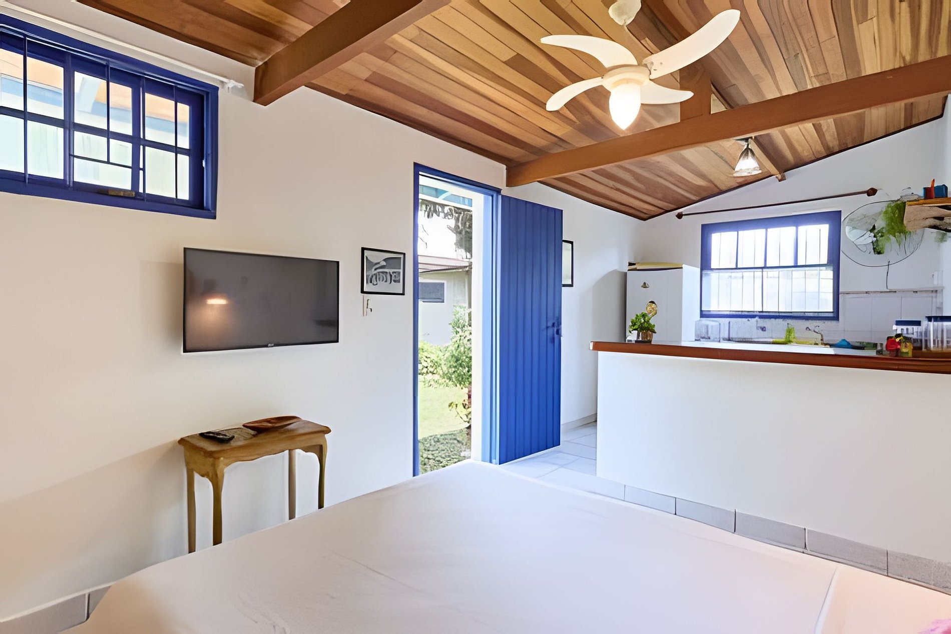 Nosso chalé é super charmoso e aconchegante. É composto por cama de casal, cozinha americana, banheiro, ar condicionado split, TV e wifi e garagem. Tudo isso num ambiente rodeado de verde, na melhor localização de Ubatuba. Ao lado do aquário de Ubatuba, próximos de excelentes restaurantes, bares, lojinhas. Localização perfeita pra curtir o melhor de Ubatuba. Estamos a uma quadra da orla do Itaguá, de onde saem passeios de barcos e possui linda paisagem pra fazer uma caminhada ou pedalar.