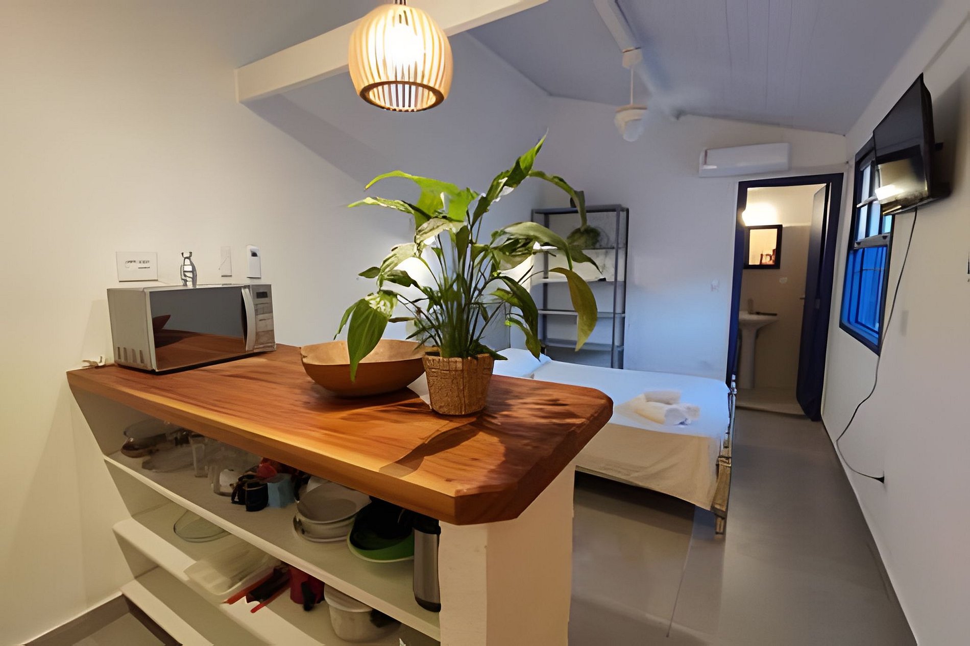 Nosso chalé é super charmoso e aconchegante. É composto por cama de casal, cozinha americana, banheiro, ar condicionado split, TV, wifi e garagem. Tudo isso num ambiente rodeado de verde, na melhor localização de Ubatuba. Ao lado do aquário de Ubatuba, próximos de excelentes restaurantes, bares, lojinhas. Localização perfeita pra curtir o melhor de Ubatuba. Estamos a uma quadra da orla do Itaguá, de onde saem passeios de barcos e possui linda paisagem pra fazer uma caminhada ou pedalar.