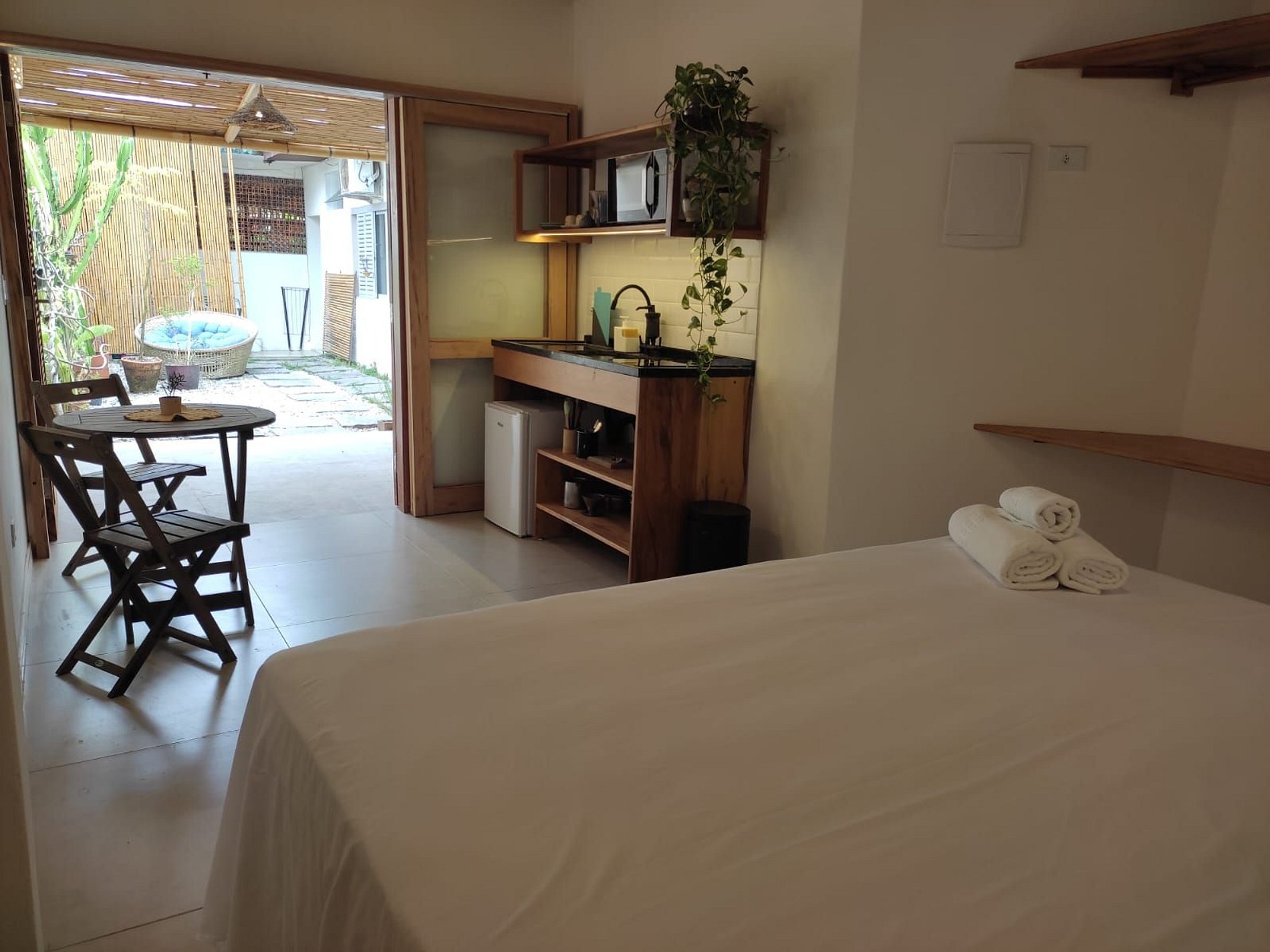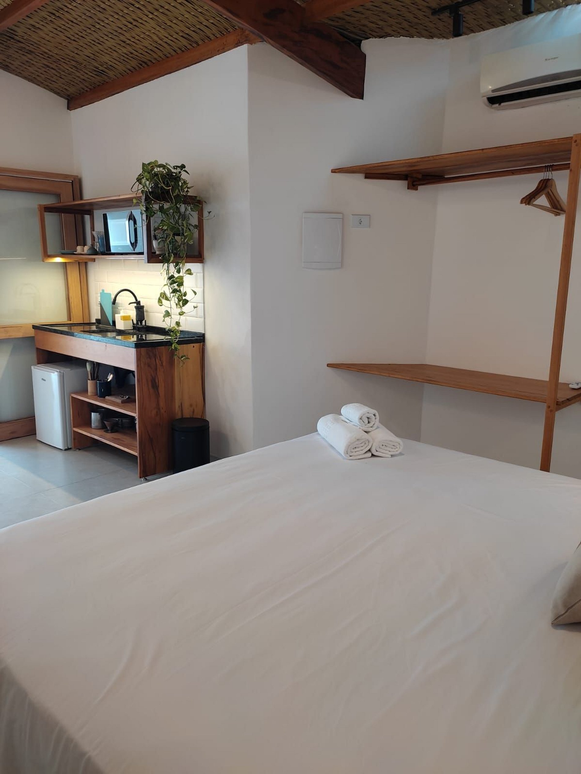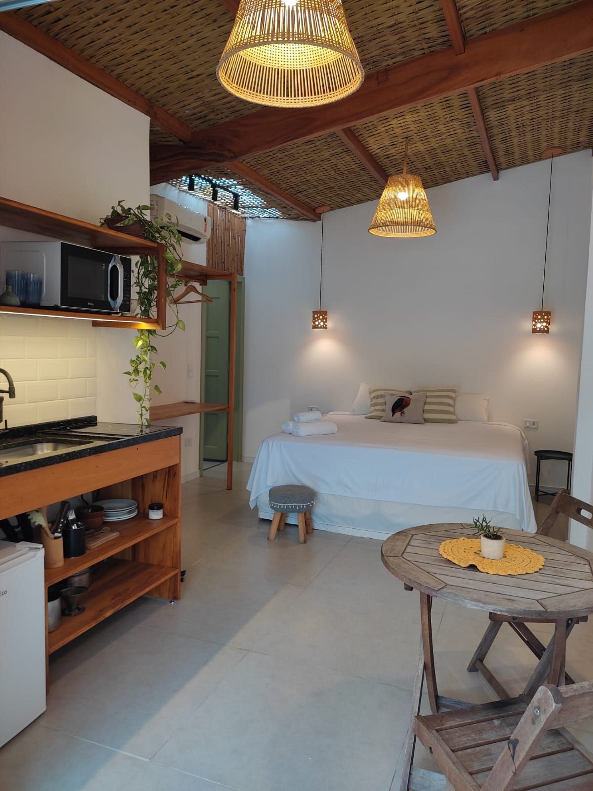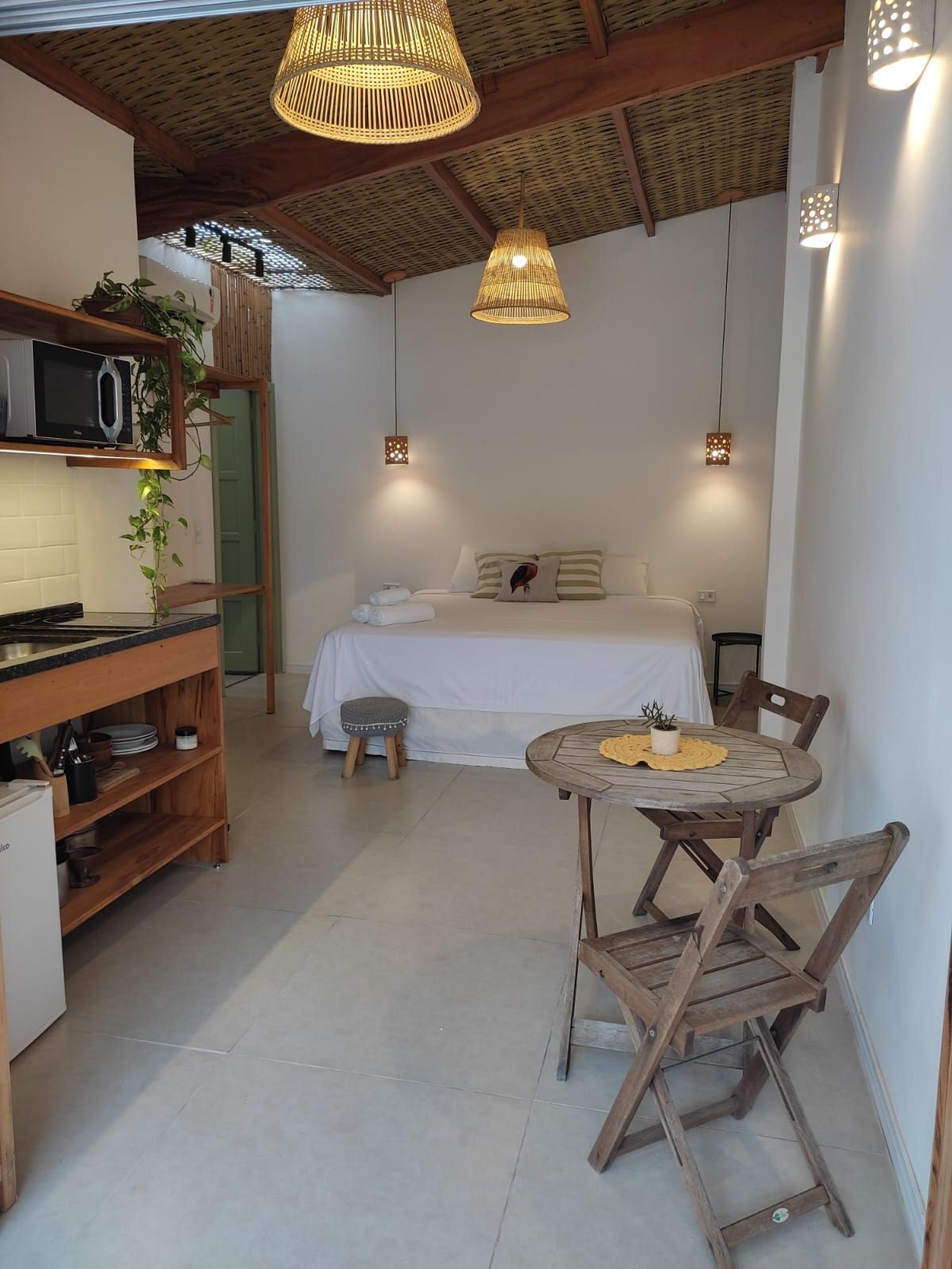 Lindo Studio estilo chalé, na localização mais privilegiada do Itaguá, ao lado do aquário de Ubatuba. A acomodação é composta por uma cama de casal king, mini cozinha com coocktop de indução, microondas, frigobar. Possui ar condicinado split, smart tv, Wi-FI e banheiro privativo com um lindo jardim. Delicioso café da manhã incluso. Nossas acomodações são aconchegantes e já incluem a roupa de cama e banho. Oferecemos total liberdade e privacidade aos hóspedes, com sistema de self check in!