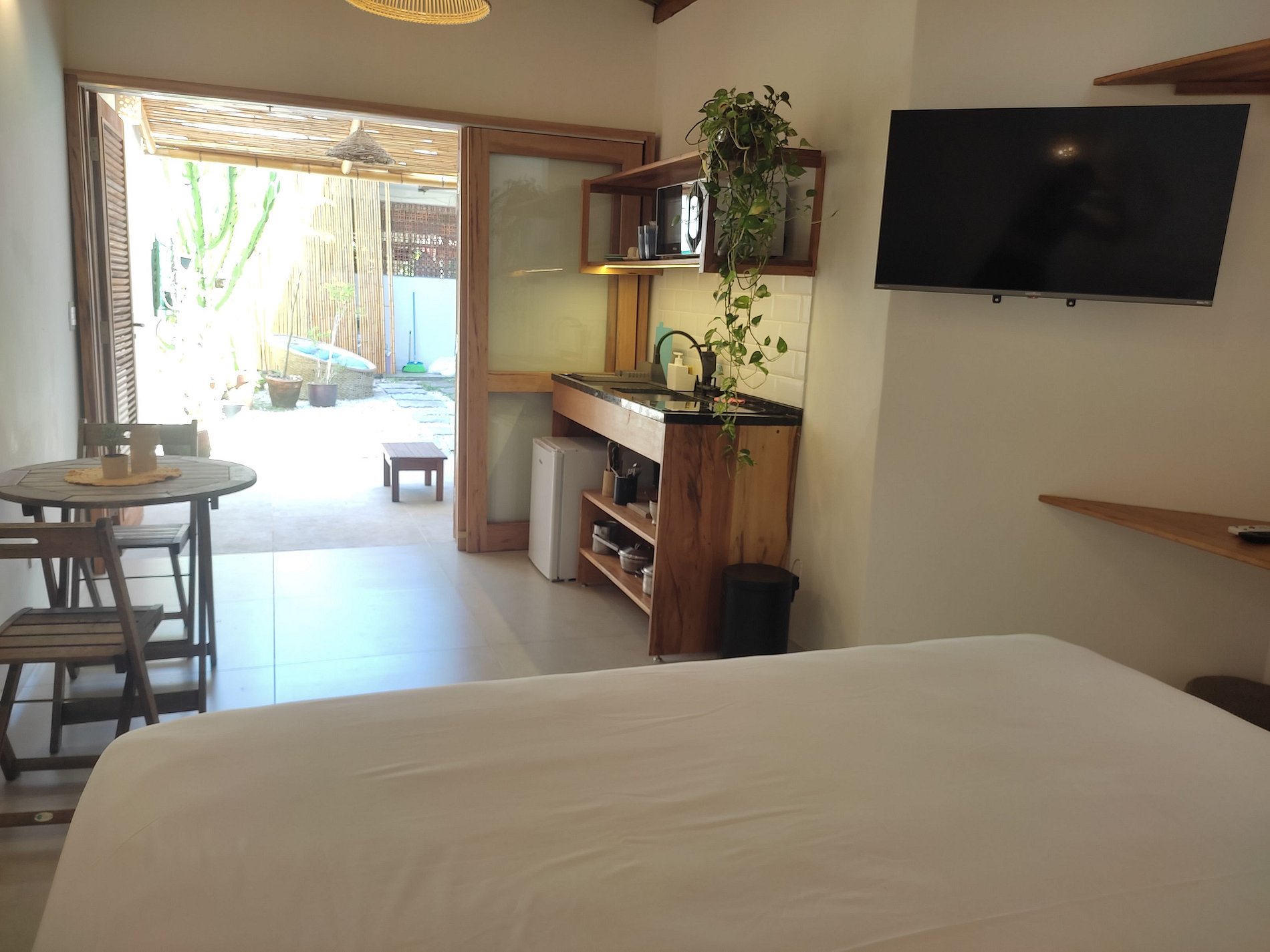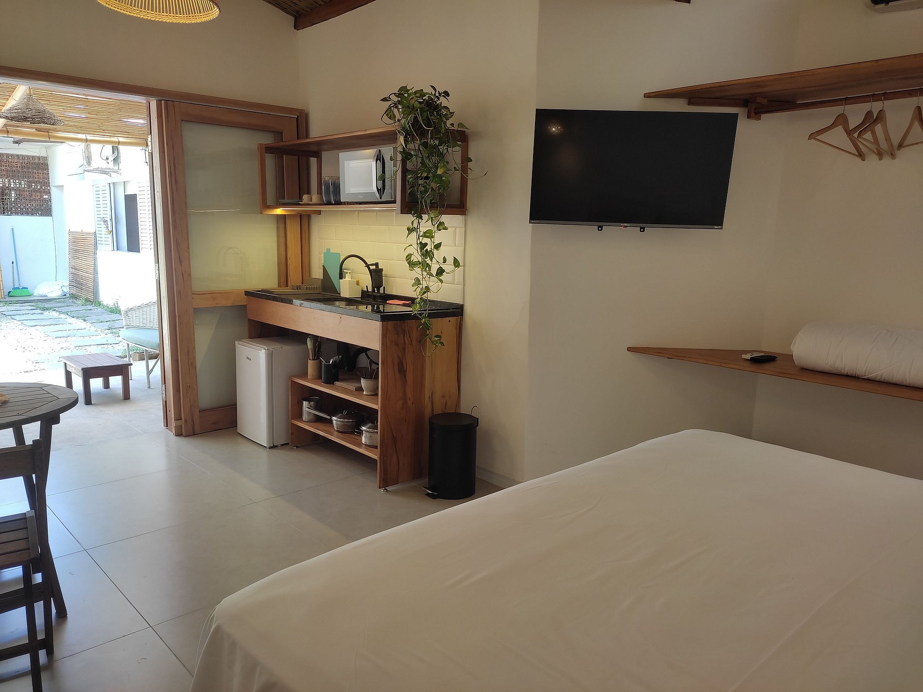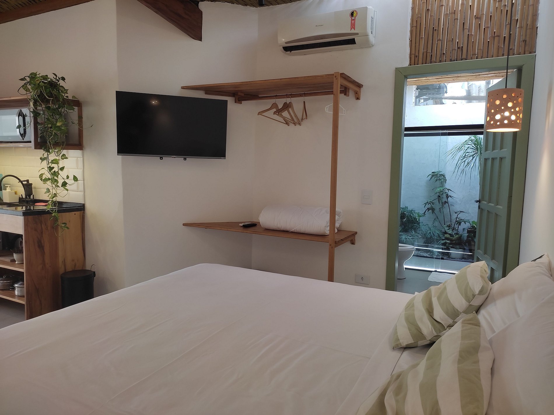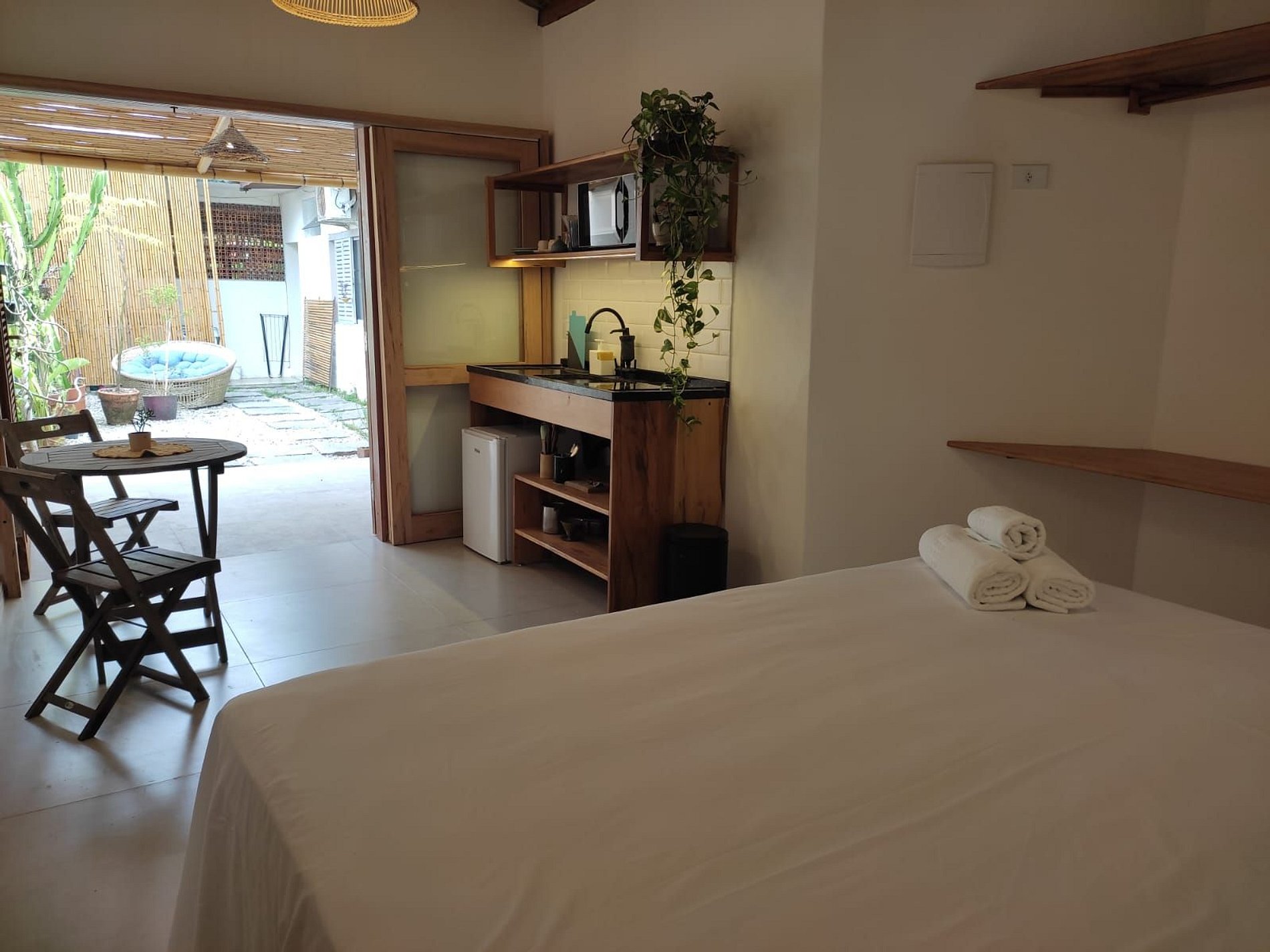 Lindo Studio estilo chalé, na localização mais privilegiada do Itaguá, ao lado do aquário de Ubatuba. A acomodação é composta por uma cama de casal king, mini cozinha com coocktop de indução, microondas, frigobar. Possui ar condicinado split, smart tv, Wi-FI e banheiro privativo com um lindo jardim. Delicioso café da manhã incluso. Nossas acomodações são aconchegantes e já incluem a roupa de cama e banho. Oferecemos total liberdade e privacidade aos hóspedes, com sistema de self check in!